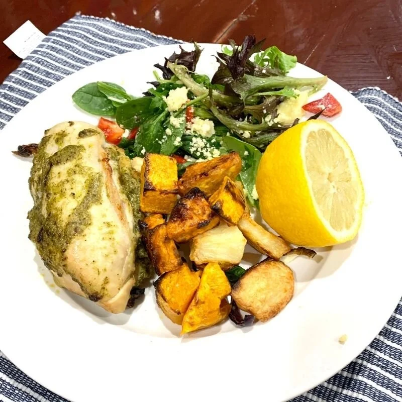 1. Preheat oven to 220 degrees. Cut up vegetables into 3cm cubes.