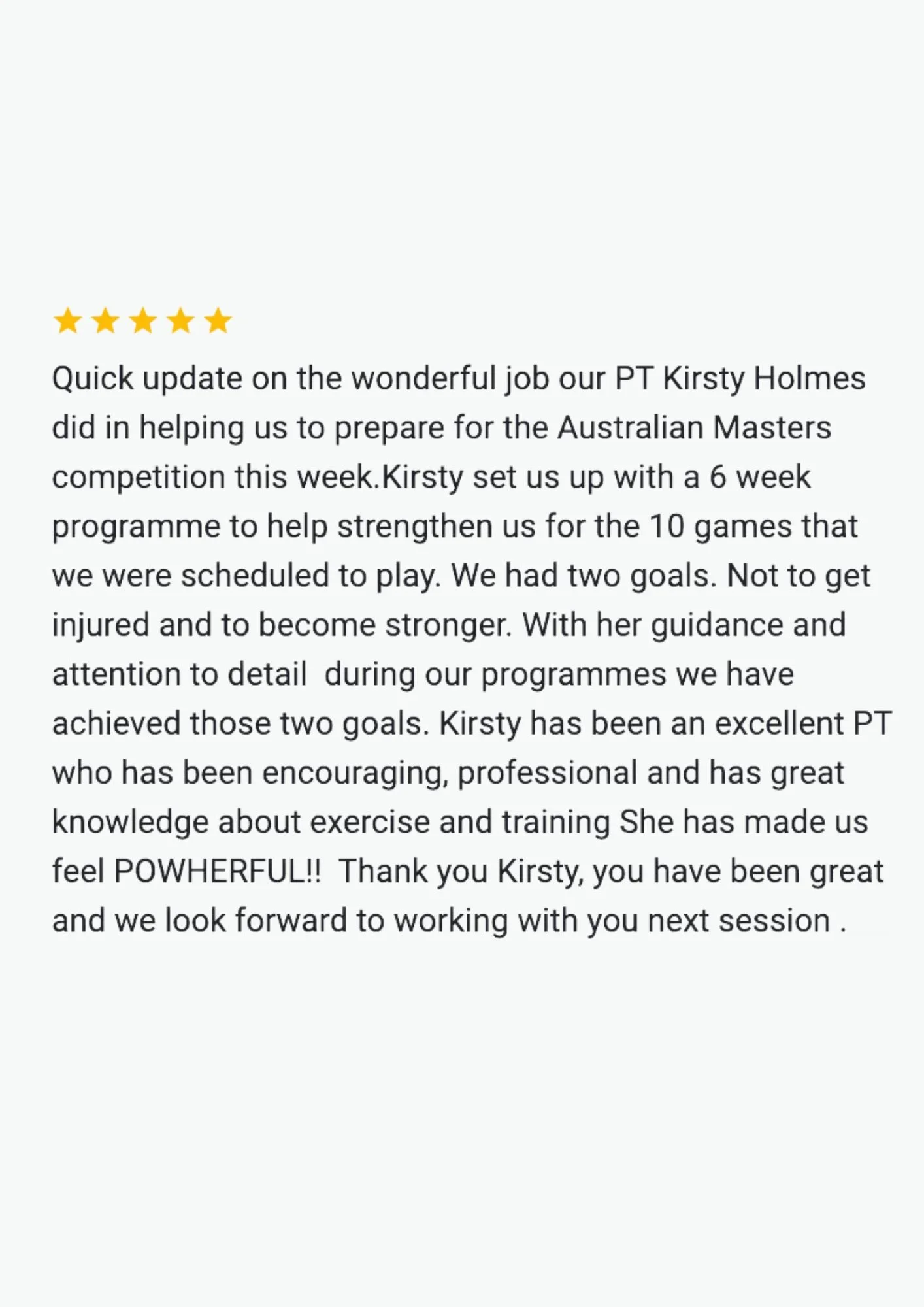 They had two goals. In their words “get stronger and not get injured” for the competition. While I can’t guarantee injury prevention as a trainer, they sure did get consistent in the gym and got stronger, more stable and fitter for the competition.